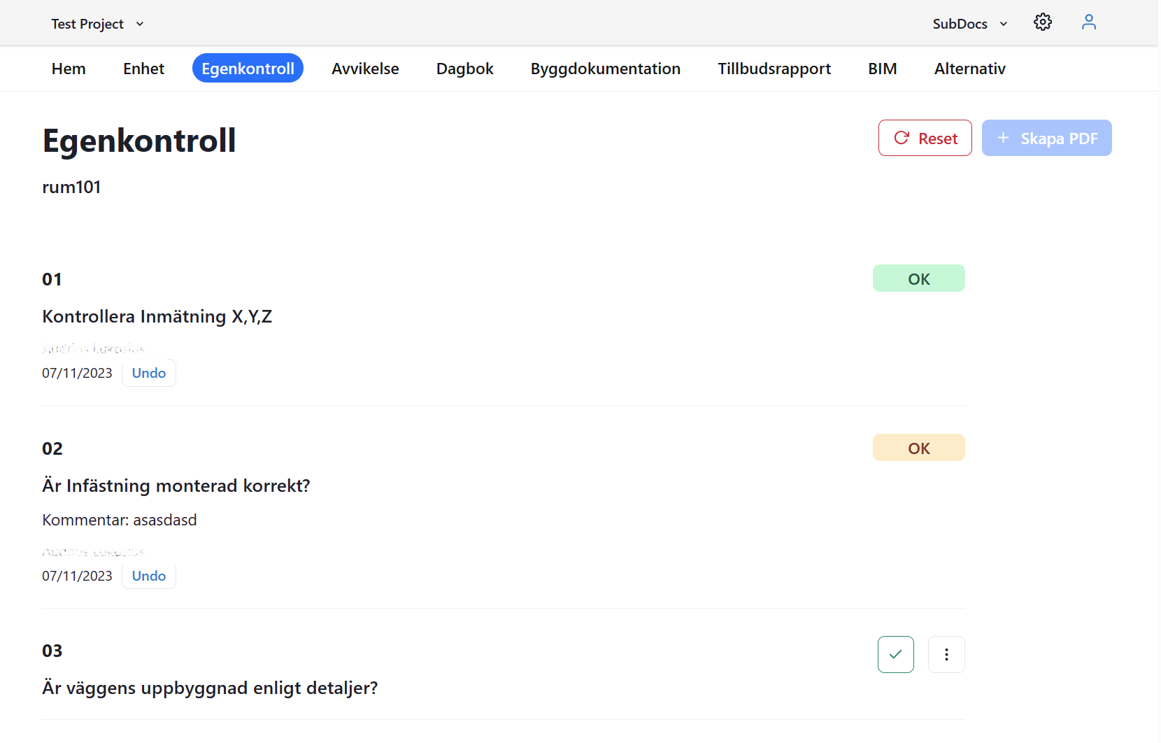 Fullständig lösning för bygg- och arbetsmiljödokumentation samt statusspårning, anpassad för underentreprenörer.